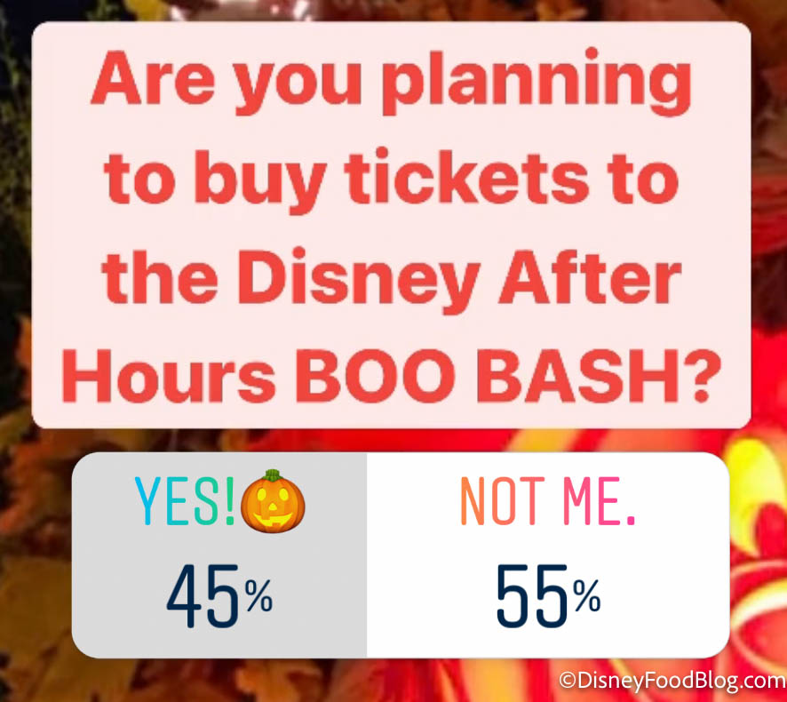 After the Boo Bash was announced, we heard tons of arguments both “for” and “against” this temporary event. Some are excited to have Halloween at all, while others are upset that Disney World will be making guests pay for what they call a “watered down” experience. So, we reached out to our Instagram followers and asked: Are you planning to buy tickets to the Disney After Hours Boo Bash?