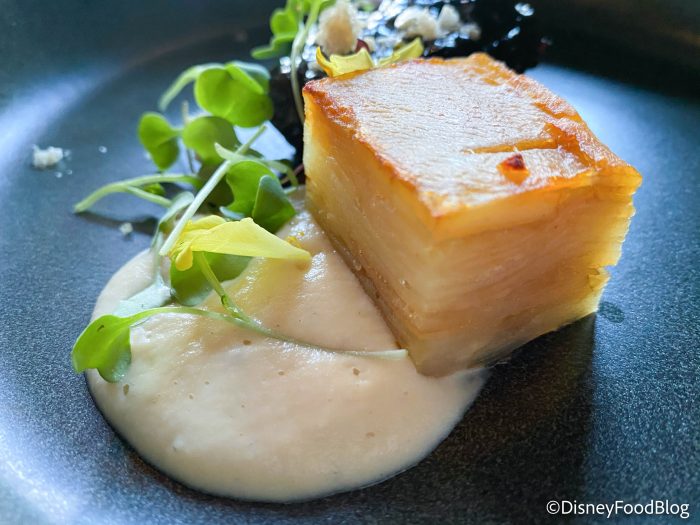 Our second starter was the Whiskey Glazed Pork Cheek! This dish is served with smoked potato terrine, apple espuma, and pork crackling crumb.