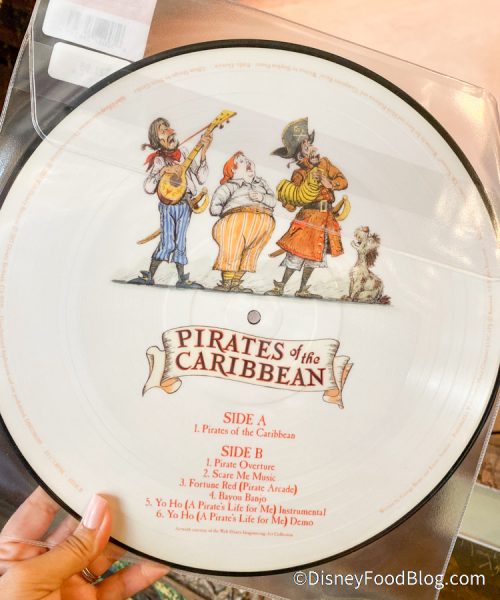 As we mentioned, these aren’t new, but they’re back, at least, at Plaza del Sol Caribe Bazaar (AKA the Pirates of the Caribbean gift shop) at Magic Kingdom! And for $21.98, they a super unique souvenir to bring home from Disney World, especially if you have a record player or collect vinyl!
