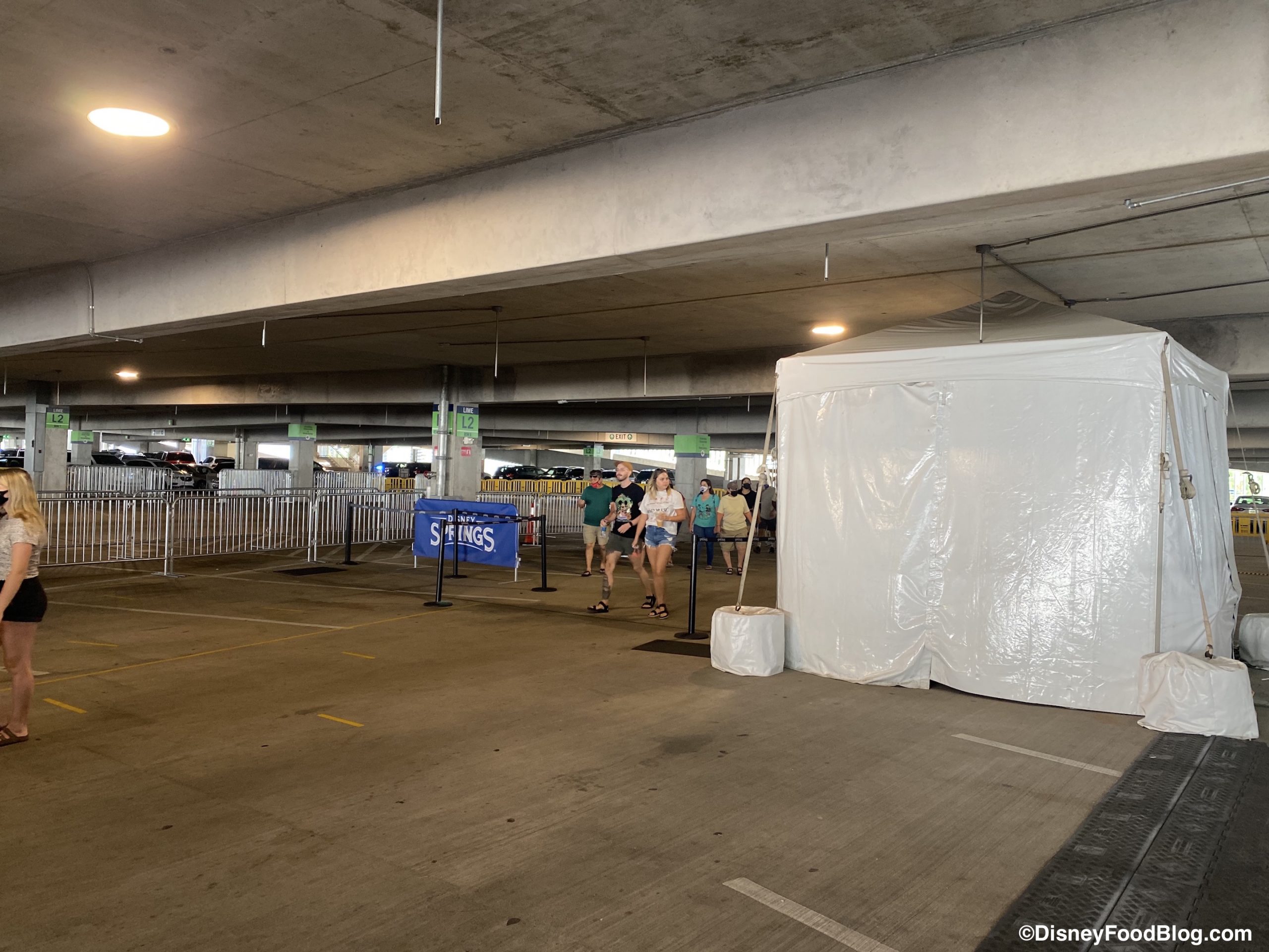 The temperature check tents were still up when we arrived at the parks, but they were empty and guests were able to pass through.