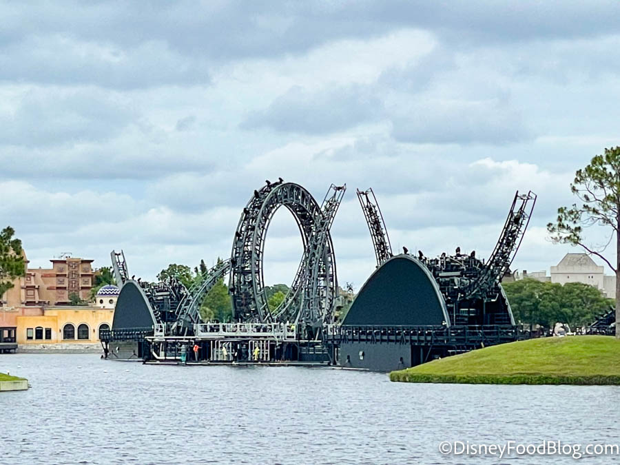 And, there was even MORE to check out later in the week — the arms that will eventually spray water were moving up and down on multiple barges in World Showcase Lagoon.
