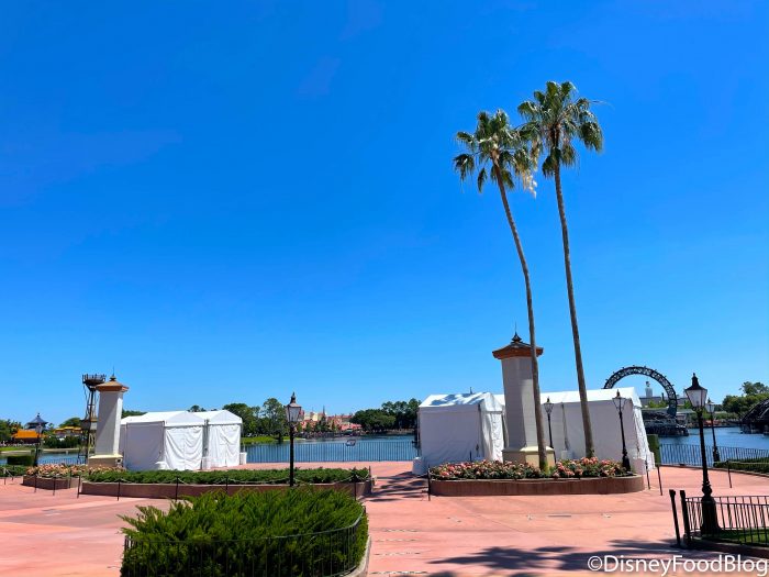 EPCOT has also been home to a host of construction projects, and one of those is the new nighttime spectacular coming to the park — Harmonious. When we were making our way around World Showcase, we noticed that there are new white tents surrounding the areas where work is being done for the show. It’s unclear what they’re for, but, hey, it’s progress!