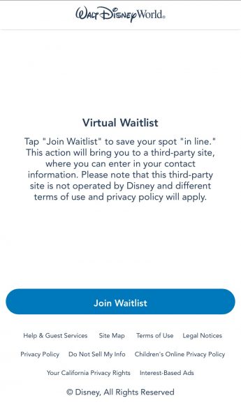 Once you scan in the QR code on your phone, you’ll go to the Virtual Waitlist Sign-Up. Save your spot by clicking on “Join Waitlist.”