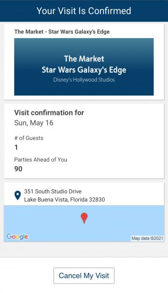 And that’s it! No more waiting for hours in line just to browse through the Marketplace shops! This is very similar to what was previously put in place here for Dok Ondar’s Den of Antiquities. We’ll let you know if we spot any other virtual lines at Disney World!