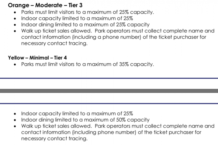 When it comes to amusement parks, like Disneyland and others, they will be allowed to increase capacity from 25% to 35% under the yellow tier.