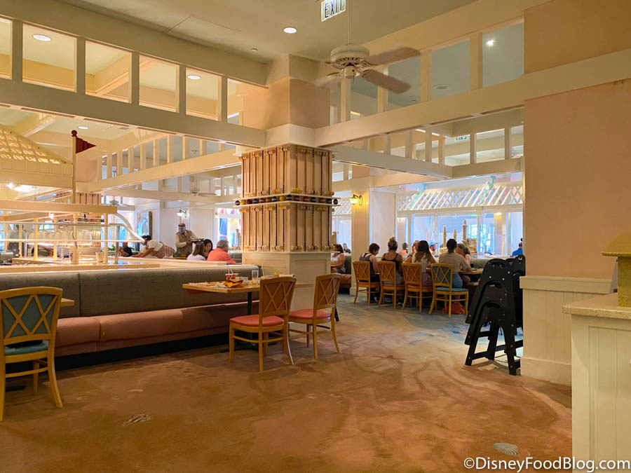 The major differences at the reopened Cape May Cafe is that it’s served family-style, NOT as a buffet, and it’s no longer a character breakfast. We’ll be sharing our full review of our experience soon (and we’ll also be back to check out DINNER!), so make sure to stay tuned to DFB.