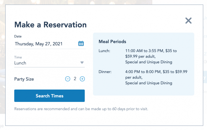 And now, you can make dining reservations for all four of these restaurants: Alfresco Tasting Terrace, Blue Bayou Restaurant, Napa Rose, and Storytellers Cafe. Today, dining reservations opened up for each location’s opening day plus the following 60 days.