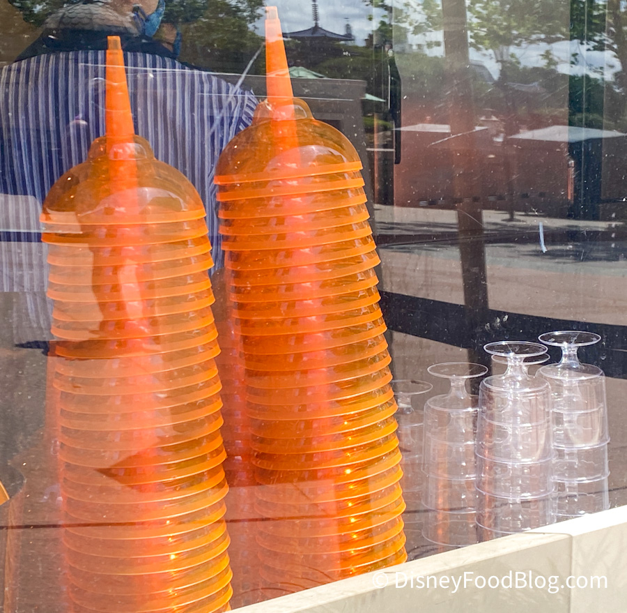 Clear cups have been out of stock, so the France Pavilion is serving up their specialty drinks in these awesome neon cups!