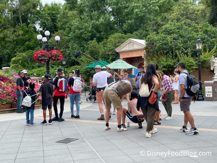 While strolling through World Showcase, we noticed some kind of filming happening in the Italy Pavilion.