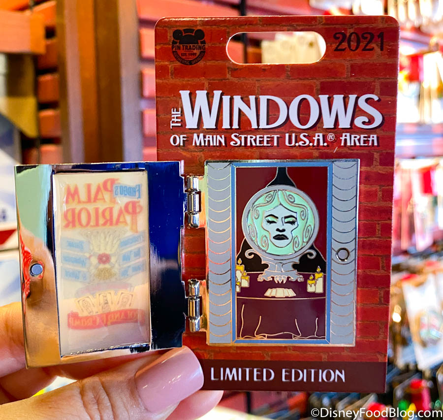 There are 2 new limited edition pins in Frontier Trading Post! You can snag the Windows of Main Street, U.S.A. Madame Leota pin…