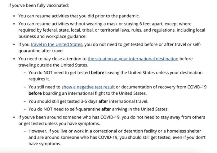 The CDC still maintains that people who are not fully vaccinated should continue to wear face masks and maintain an appropriate physical distance from others in many settings, including when attending a crowded, outdoor event like a live performance or parade.