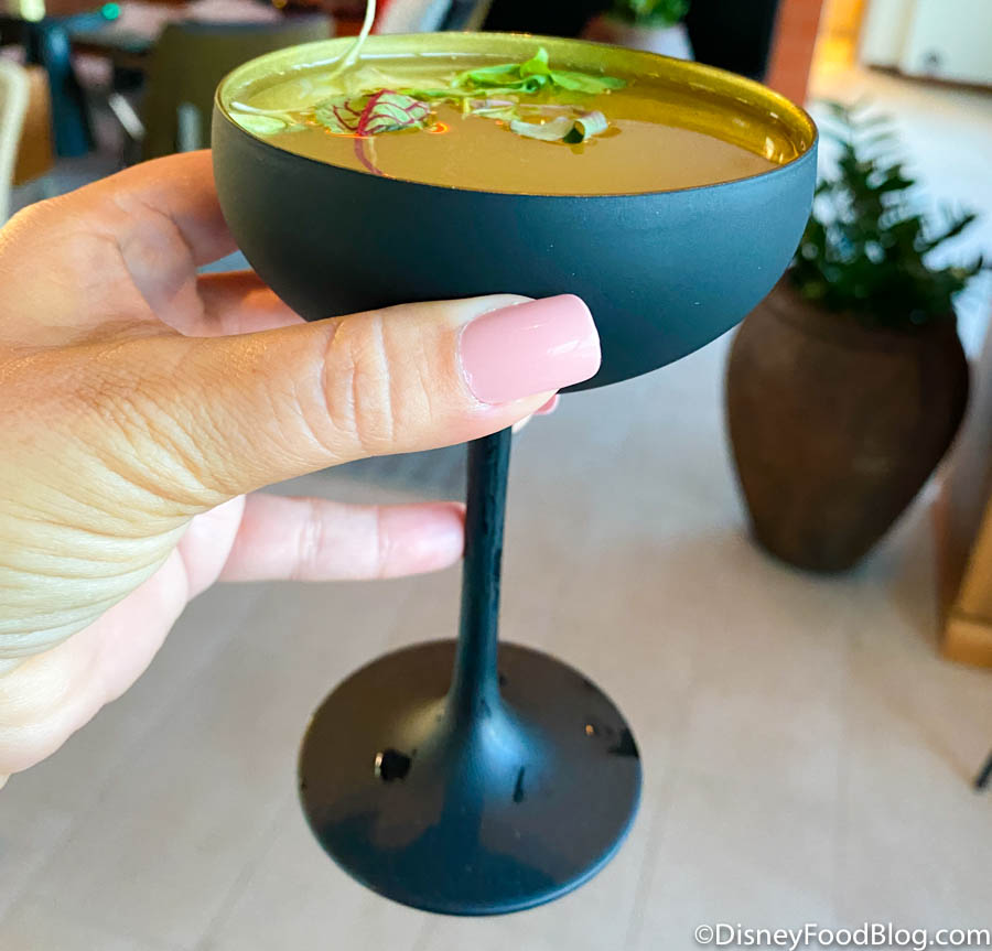 Of course, we sampled some cocktails, too! We kicked things off with the Firebird, which has Suntory Haku Vodka, Tozai Saki, and cantaloupe. That housemade cantaloupe juice was so good, and we ended up getting 2 of these. Not to mention, the presentation is stunning. The glass is shaped like a bird!