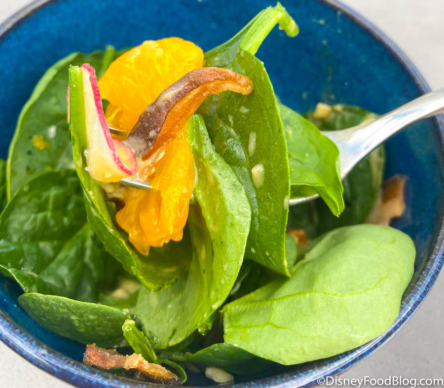 …while the Me So Earthy Salad was delicious! That comes with baby spinach, shiitake bacon, toasted hazelnut, mandarin, red radish, and miso-ginger dressing.