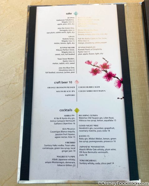…and of course, wine and sake by the glass.