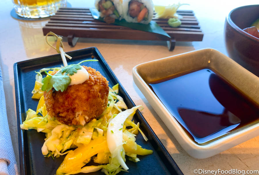 …while the Sakana Fritters were so good that we went back for seconds. They’ve got breaded steam fish, capers, red pepper, mango slaw, and lemon aioli.