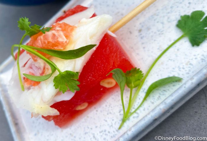 The Watermelon and Crab features compressed watermelon, grapefruit, pickled daikon, and lime-honey vinaigrette…