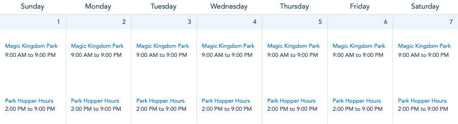 Magic Kingdom hours will be from 9AM to 9PM the entire first week of August!