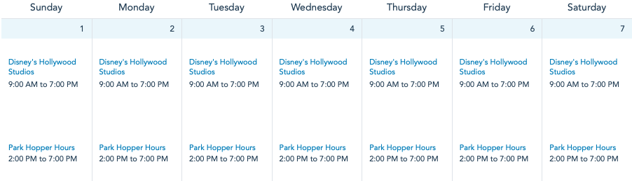 Hollywood Studios will close before the sun goes down, with hours from 9AM to 7PM.
