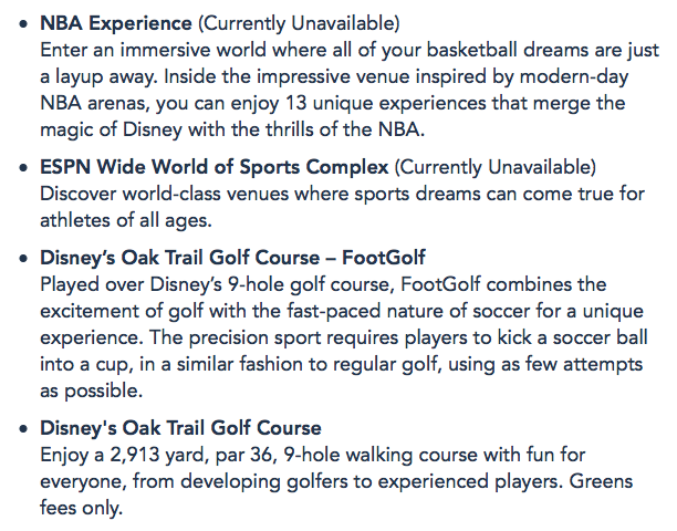 What are these “other experiences” you’ll be able to visit? Well, they include a number of things like Disney’s water parks…