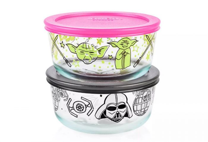 Need a better way to store your food? The Force is with these Star Wars Pyrex Containers. The set of 2 features a container with Baby Yoda and another with Darth Vader.