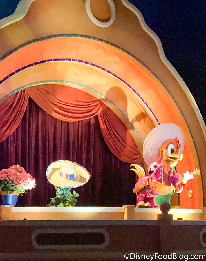 Not long after Donald left, the other two animatronics were taken away as well, all to be replaced by cardboard cutouts. And let us just say, we definitely noticed that difference! BUT, all is right in the world once again. Disney revealed plant/cardboard/missing Caballeros were a temp fix so the VERY old animatronics could get some much-needed TLC. Now, our favorite “birds of a feather” are back!