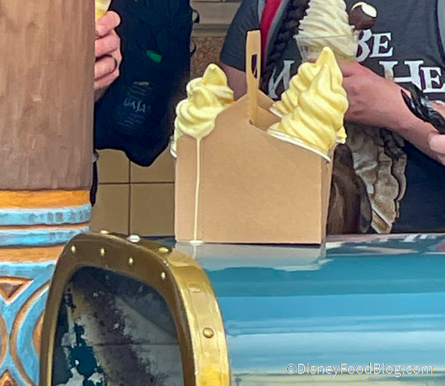 You know what’s stressful? When your Dole Whip is melting faster than you can eat it. But you know what’s sad? Finding an entire box of Dole Whips melting in the sun — without anyone to claim them! If this photo below is a trigger for you, we apologize!