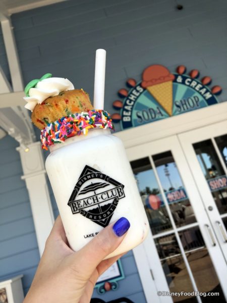 Some of our favorite sweet treats can be found over at Beaches & Cream Soda Shop at Disney’s Beach Club Resort! You can chow down on cookie fries or sip a root beer float, and the over-the-top milkshakes are super fun! But something was pretty different when we recently ordered a milkshake at Beaches & Cream — take a look!