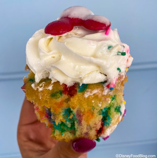 The specialty shakes are still $15, and the Mickey Confetti Shake we got today is made with a vanilla shake, whipped cream, rainbow sprinkles, and is topped with a Rainbow Confetti Cupcake. You also get to keep the souvenir cup the milkshake comes in, so if you want a Yacht & Beach Club margarita glass, now is the time to grab one of these shakes!