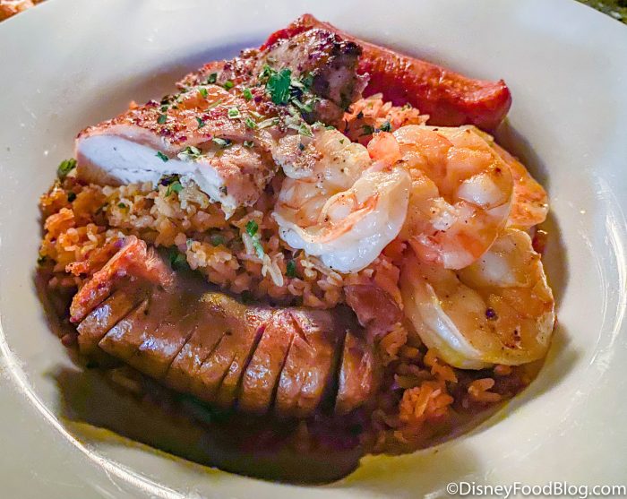 But wait, there’s more! We also grabbed the Jambalaya, which features Jumbo Shrimp, Andouille Sausage, Chicken, Tasso Ham, Creole Rice, Spiced Tomato Jus. This item is priced at $36.