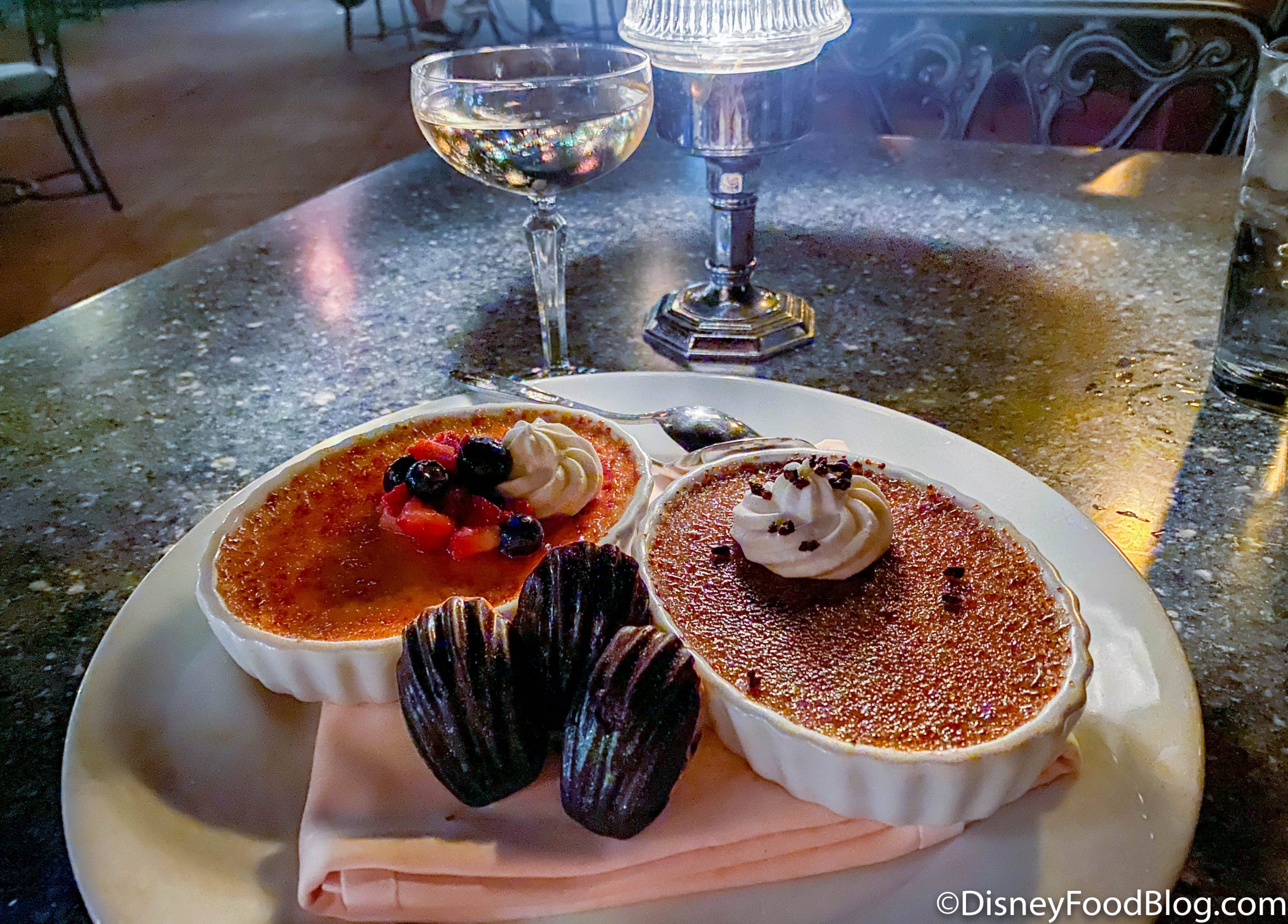 And we HAD to leave room for dessert too. This is the Sparkling Wine Celebration Finale which comes with two glasses of Le Grand Courtâge Grand Cuvée Blanc de Blancs Brut, served with a Crème Brûlée Duo of Vanilla Bourbon and Café Au Lait with Chocolate-dipped Madeleines. It also includes exclusive Blue Bayou Macarons – Bananas Foster, Signature Hurricane, and Pecan Praline, all for $65.