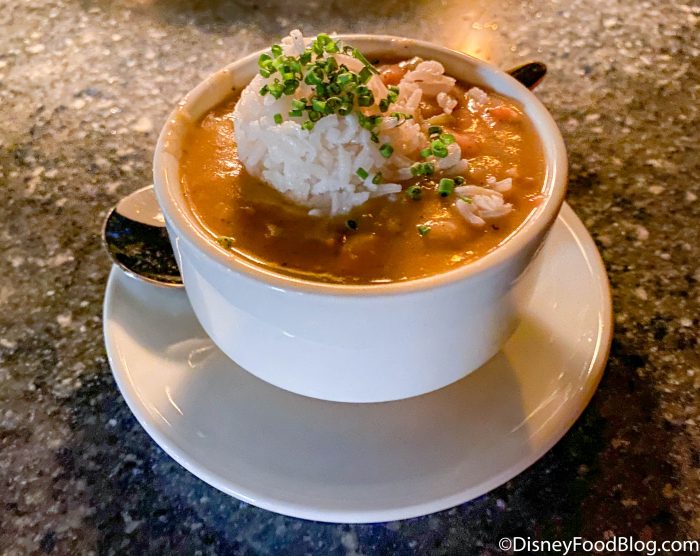 For today’s meal we got QUITE the spread. First up, the Signature Gumbo featuring Chicken, Andouille Sausage, Tomatoes, Okra, Jasmine Rice, Green Onions. This item is priced at $7.