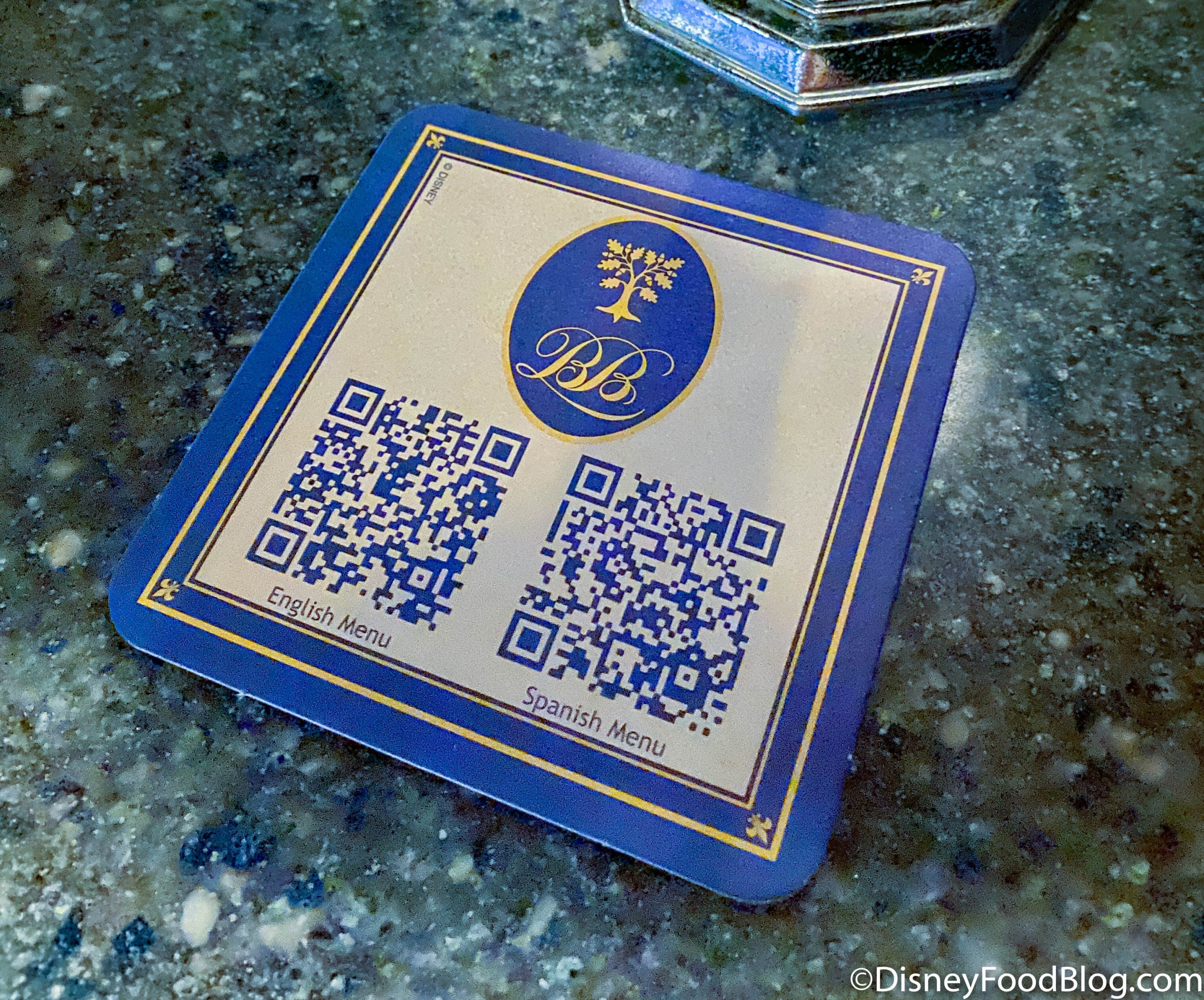 To get a look at the menu for Blue Bayou, you’ll scan the QR code on the coaster.