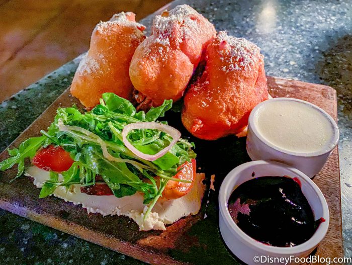 Next, we HAD to grab the classic Monte Cristo Sandwich to see how it compared to the other ones we’ve had since Disneyland reopened. The Monte Cristo is made with Turkey, Ham, and Swiss, served with Crème Anglaise, Seasonal Preserve and Seasonal Fruit and is priced at $29.