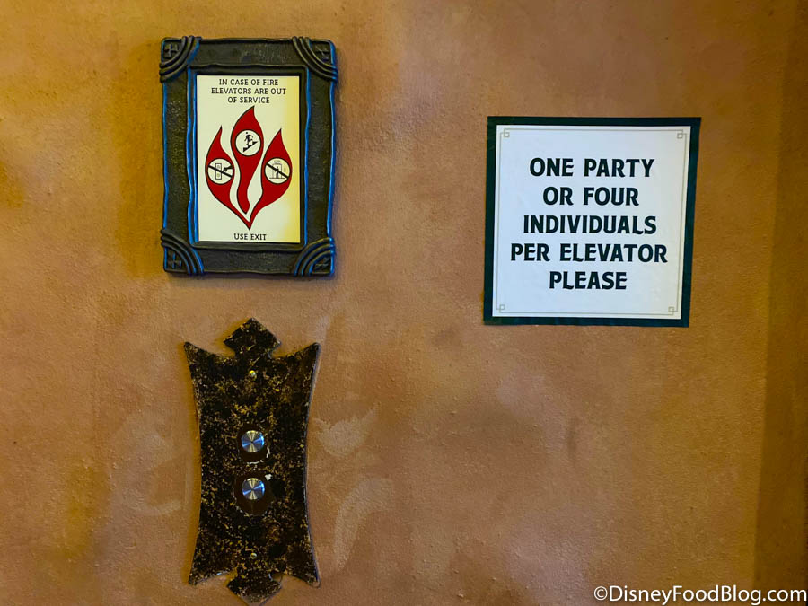 Inside the hotel itself, signage still states that the elevator can accommodate 1 party or 4 individuals per trip. Nothin’ new here!