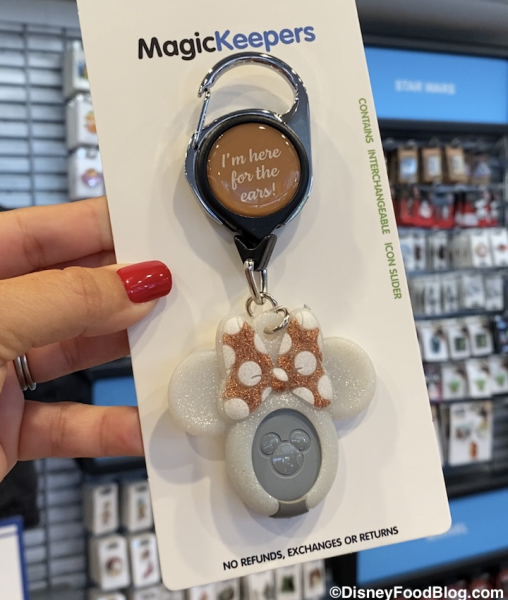 We stopped inside Pin Traders on our visit to EPCOT today, and we spotted a handy new souvenir. Check out this Minnie MagicKeepers!