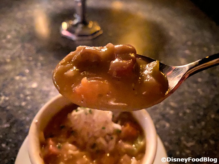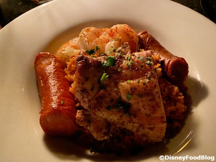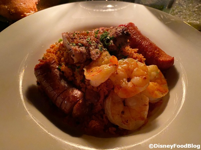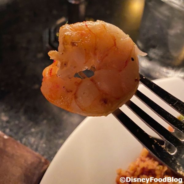 There’s a LOT of meat in this dish, but the standout to us was actually the chicken. If you’re a seafood person, you’ll find that the shrimp is cooked perfectly. No rubbery shrimpies here! The sausage was a touch spicy, but it was mostly flavorful and the spice was not overwhelming. You get two substantial pieces of sausage with the dish. All in all, that’s a LOT of meat!