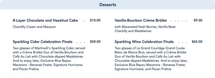 We’re celebrating the reopening of Blue Bayou, so of course we got a little dessert: the Sparkling Wine Celebration Finale!