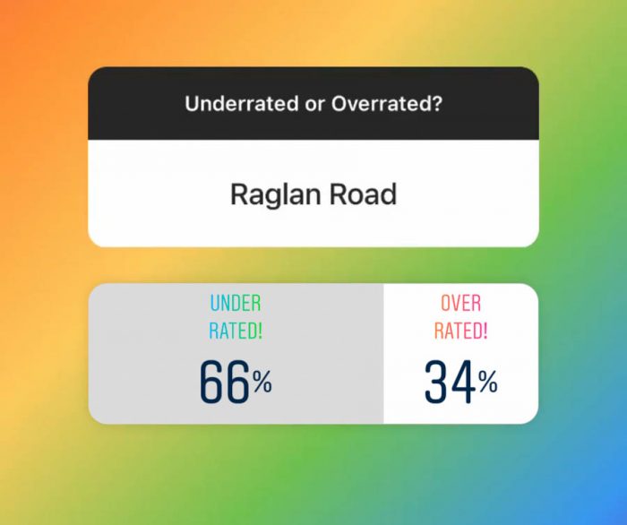 66% of voters thought that Raglan Road was underrated, while the other 34% had different thoughts.