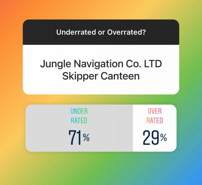 …and it seemed our readers are BIG Jungle Cruise fans. 71% of voters agreed that Skipper Canteen is underrated!