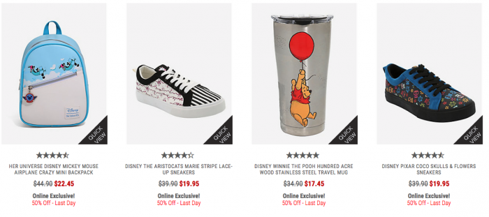 Today is the LAST DAY to save up to 50% OFF a whole bunch of Disney items and more on Hot Topic’s website!