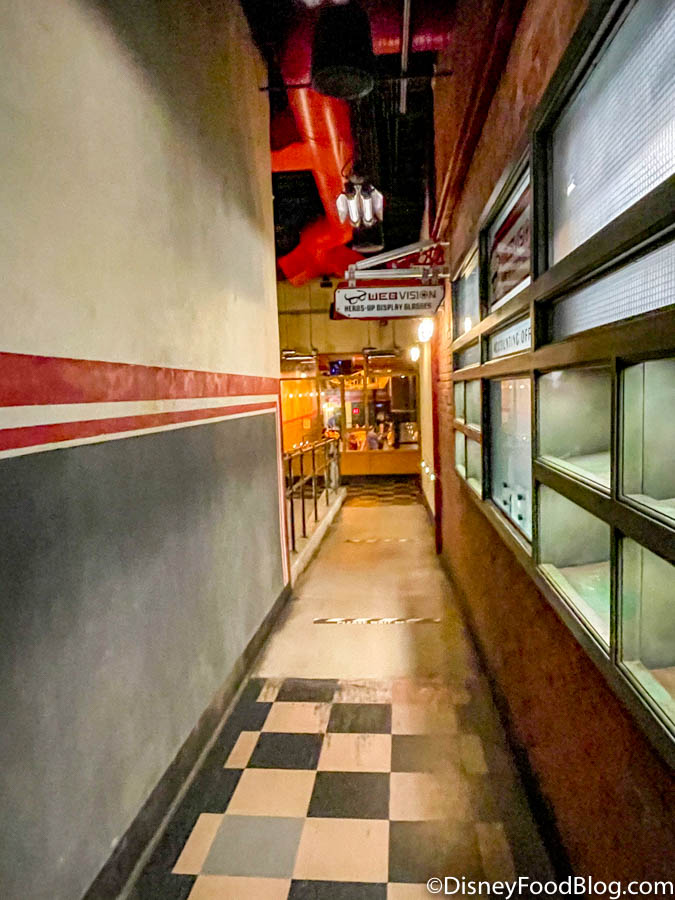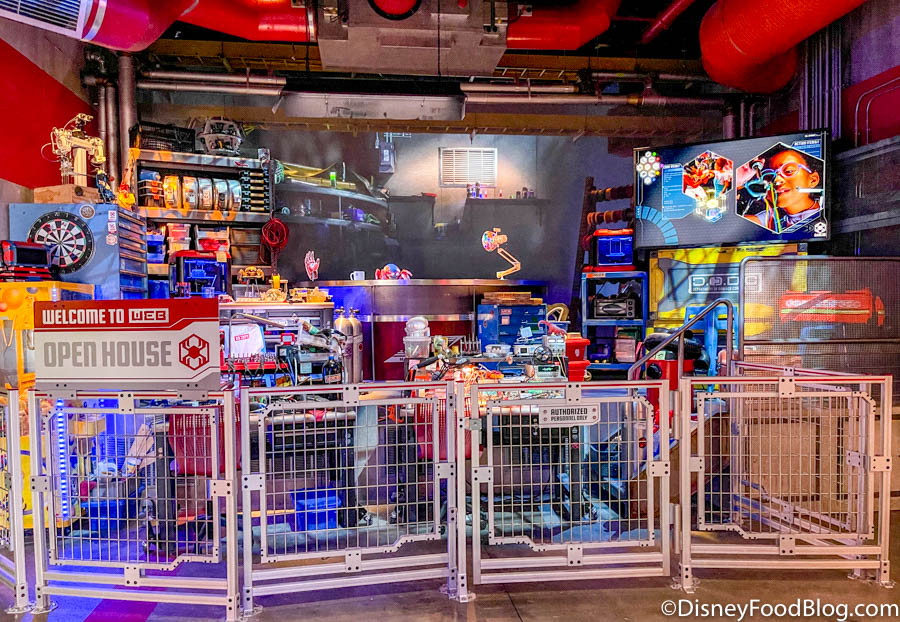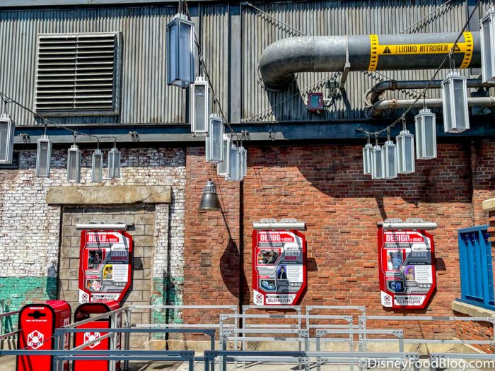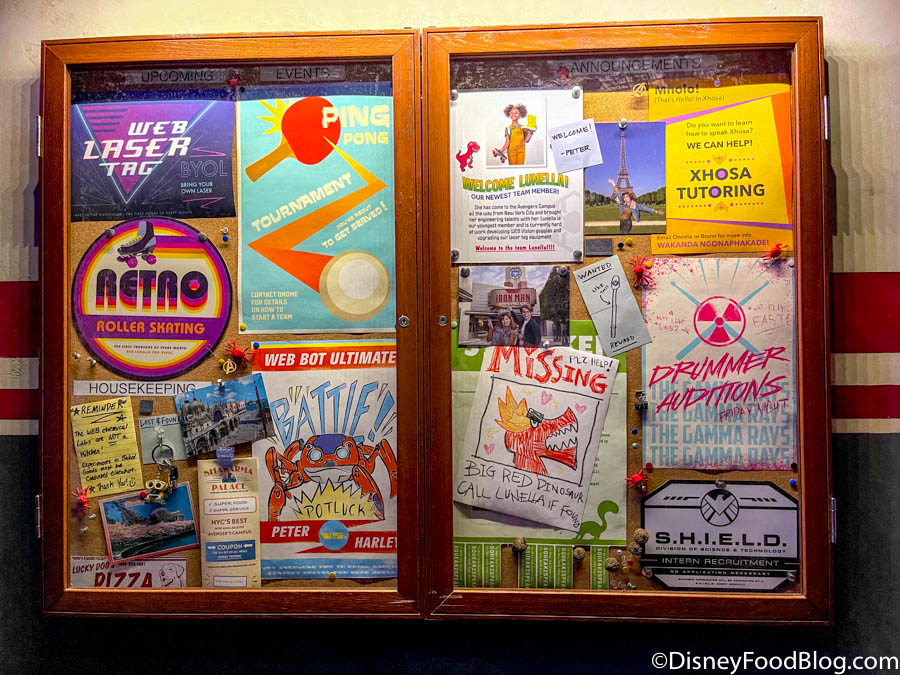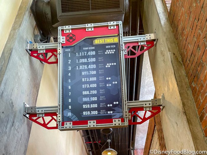 Now, this is Disney we’re talking about. That means there are going to be some pretty cool Easter eggs! In the first “waiting room” inside, you’ll see a sign with 5 characters on it. Those are Peter Parker, Onome, Harley Keener, Doreen Green, and Lunella Lafayette, and they’re the engineering team for the Web Slingers!