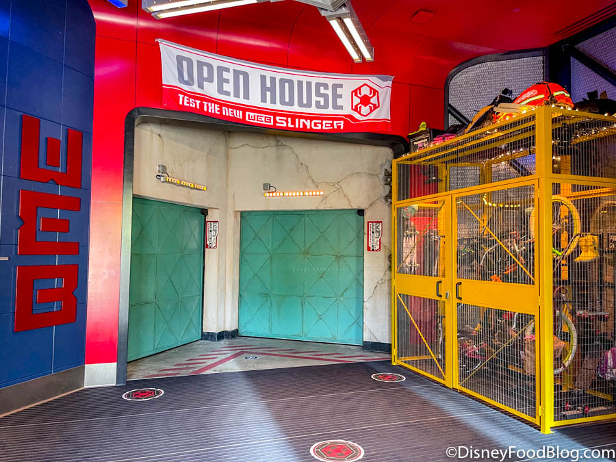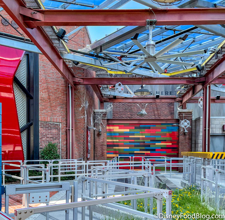 To the side, you’ll also see a FastPass entrance. Again, FastPass will NOT be an option when WEB SLINGERS initally opens.