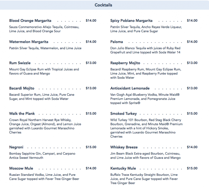 There are also a number of non-alcoholic specialty beverages and mocktails available for an additional price.