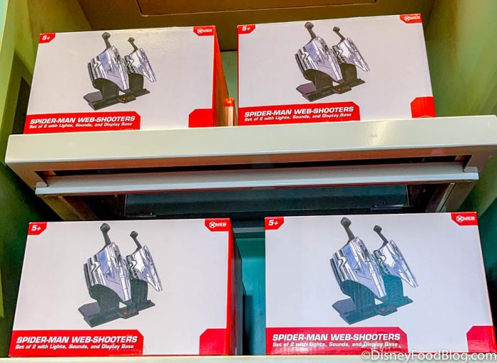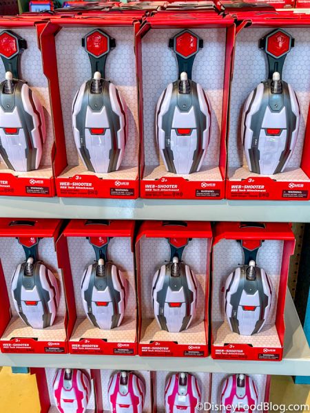 Perhaps the most interesting piece of merchandise (and yes, maybe even cooler than the Spider-Bot) is the WEB Tech. These are interactive wearable bands that you can wear on the Web Slingers: A Spider-Man Adventure attraction to plus up your ride experience! We’re interested to see how wearing this on the ride changes the experience.