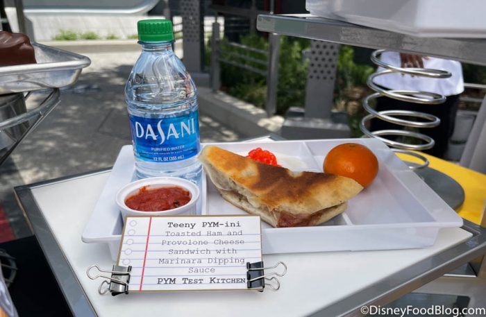 Next up, here’s a look at the Pym-ini Sandwich! This dish is made with Salami, Rosemary Ham, Provolone and Sun-dried Tomato Spread on Toasted Focaccia served with Marinara Dipping Sauce and Arugula Salad. You can grab it for $14.49. Essentially this little beauty tasted like a pizza sandwich (which, if you’ve never made one at home, come back to us when you have cause it’s a delicious snack you’ll LOVE to make time and time again).