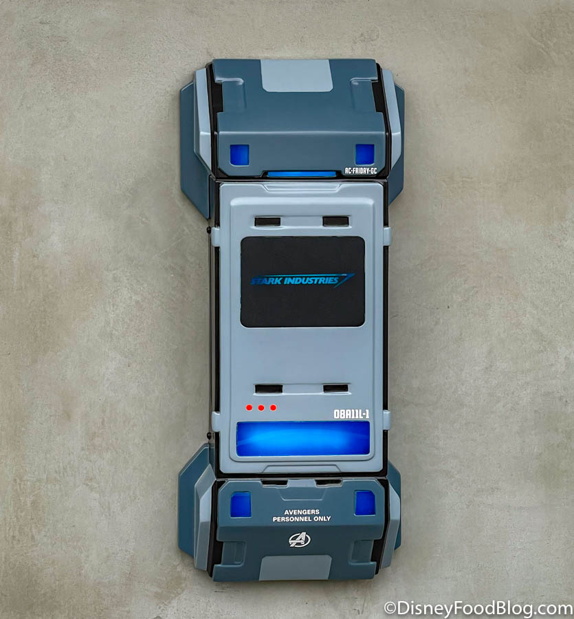 Check out this Stark Industries panel on one of the walls with the “Avengers Personnel Only” markings on the bottom. Pretty neat!