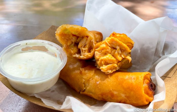 You know we love chowing down on Spring Rolls in Magic Kingdom, and we’re just happy to have the Adventureland cart back open. But recently, we stumbled upon a sweet, sweet surprise: Buffalo Chicken Spring Rolls are BACK on the menu!