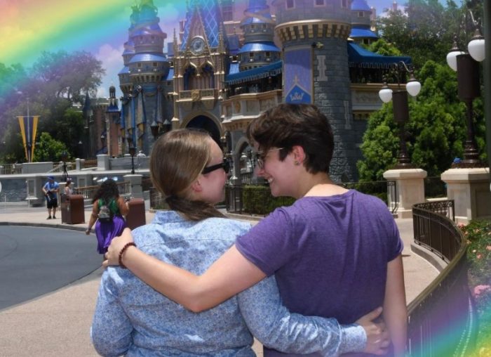 There are two different rainbow effects you can use! Whether you’re visiting Disney specifically to celebrate Pride, or you just happen to coincide with it, this is a fun, colorful way to commemorate your trip and support the LGBTQ+ community! There are also limited-time Pride backdrops available at the PhotoPass Studio in Disney Springs.