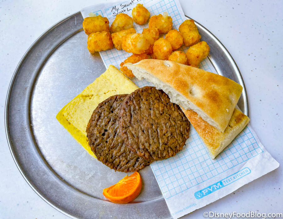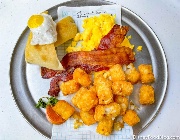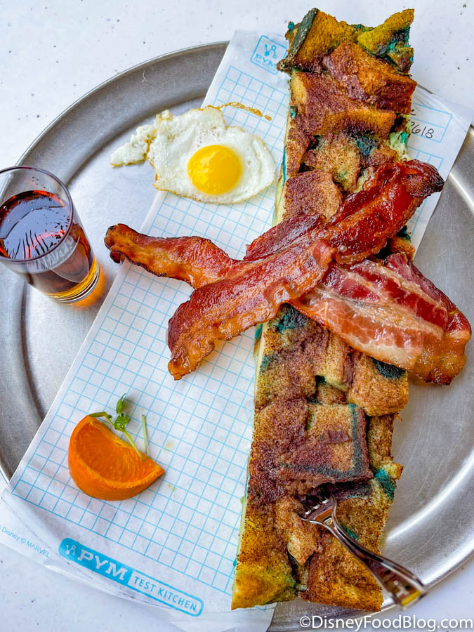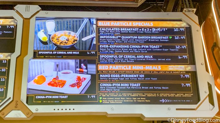We’re headed to the main dining hub of this new land in California Adventure, PYM Test Kitchen. We’ll be chowing down throughout the day here, kicking things off with a BIG breakfast. (Seriously, Ant-Man would be proud of this feast!) Let’s dive right in!