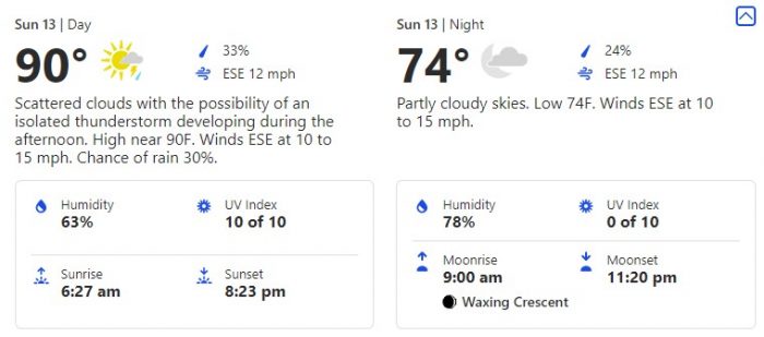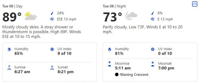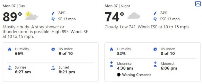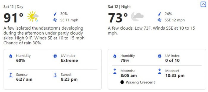 Here, we’ll see a 91-degree high and a 73-degree low.